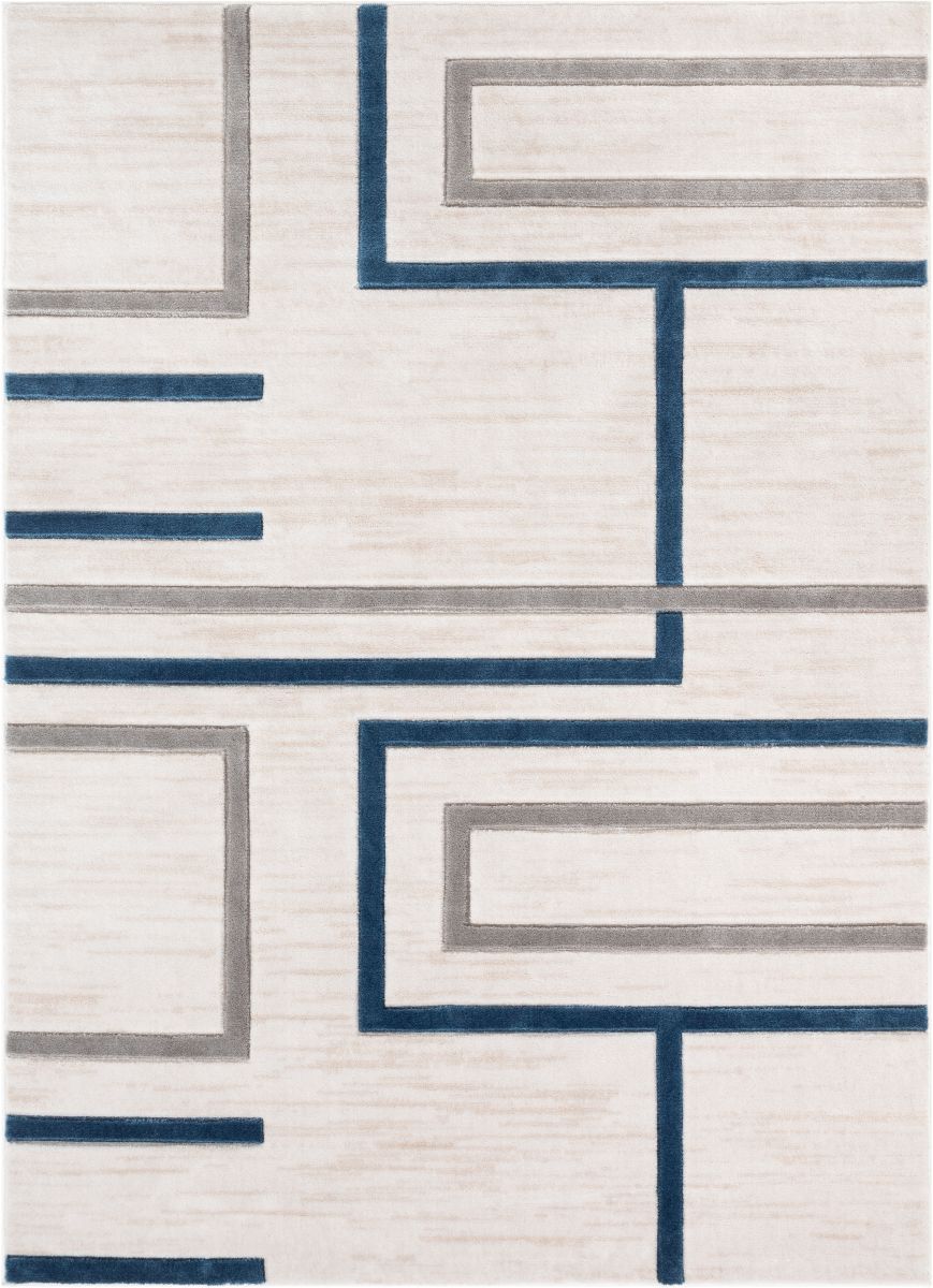 Fiona Blue Modern Geometric Lines 3D Textured Rug GV-94