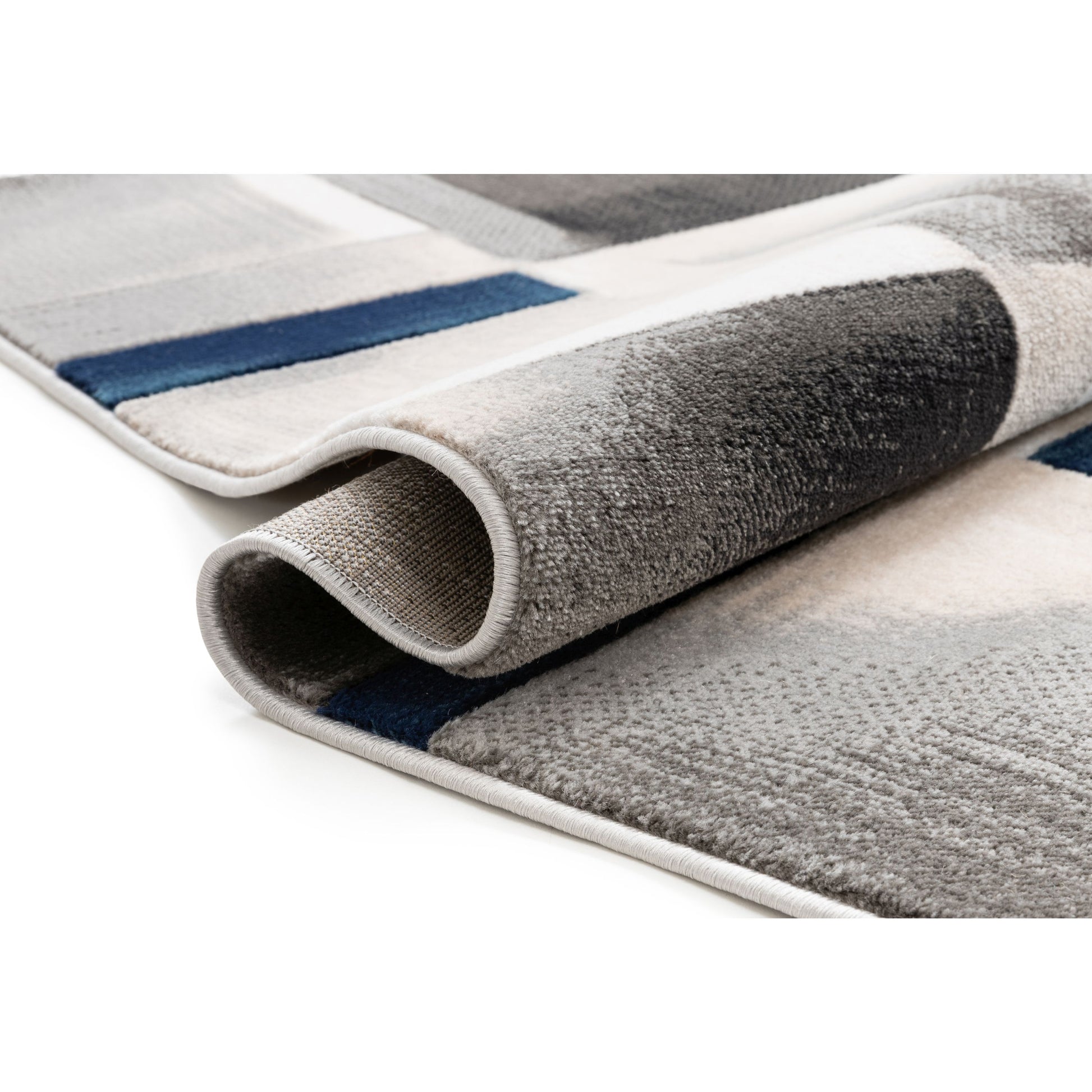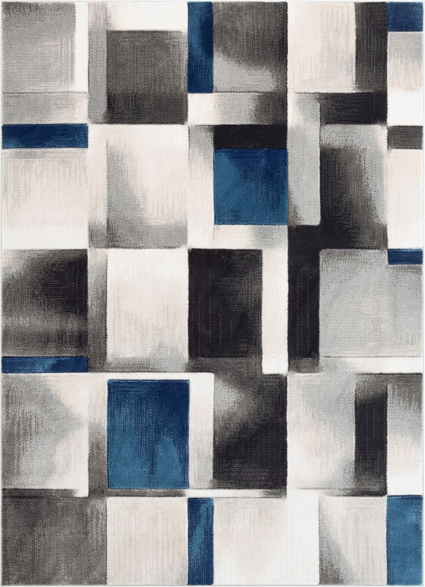 Louisa Blue Modern Geometric Boxes 3D Textured Rug GV-74