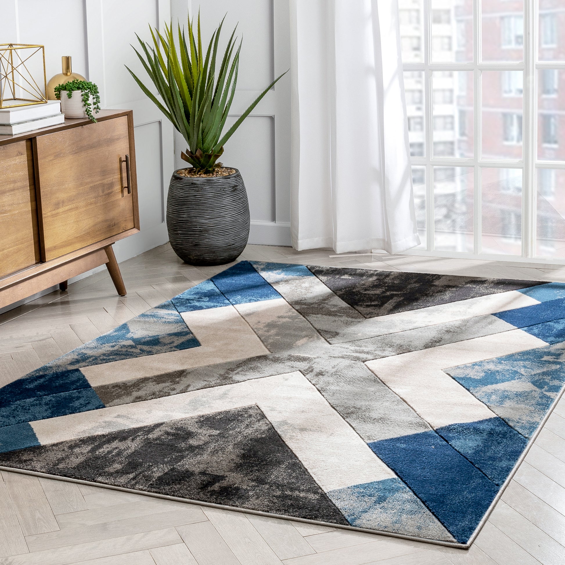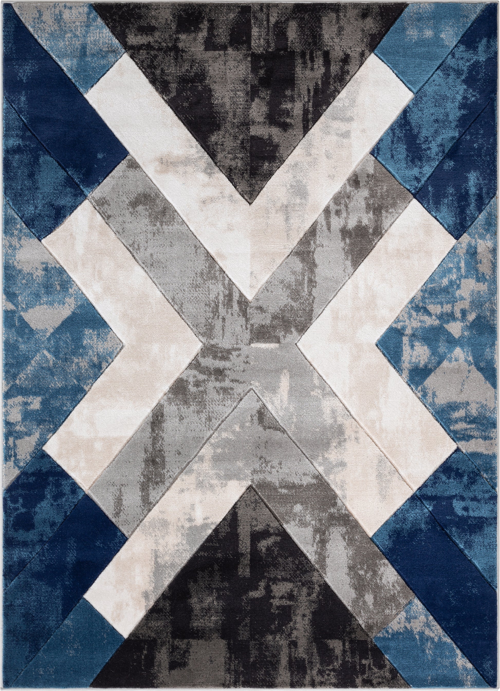 Rosa Blue Modern Geometric 3D Textured Rug GV-104