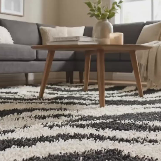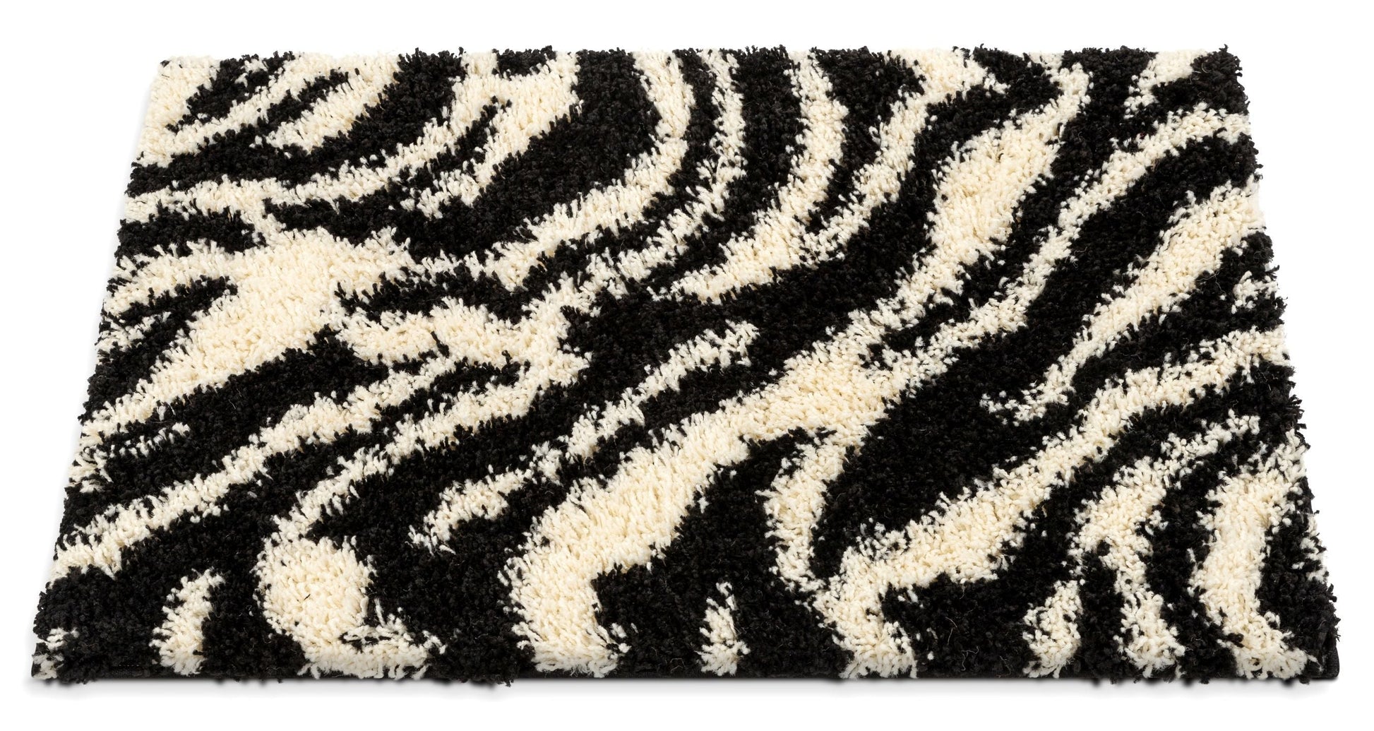Safari Zebra Black Contemporary Shag Rug 7033