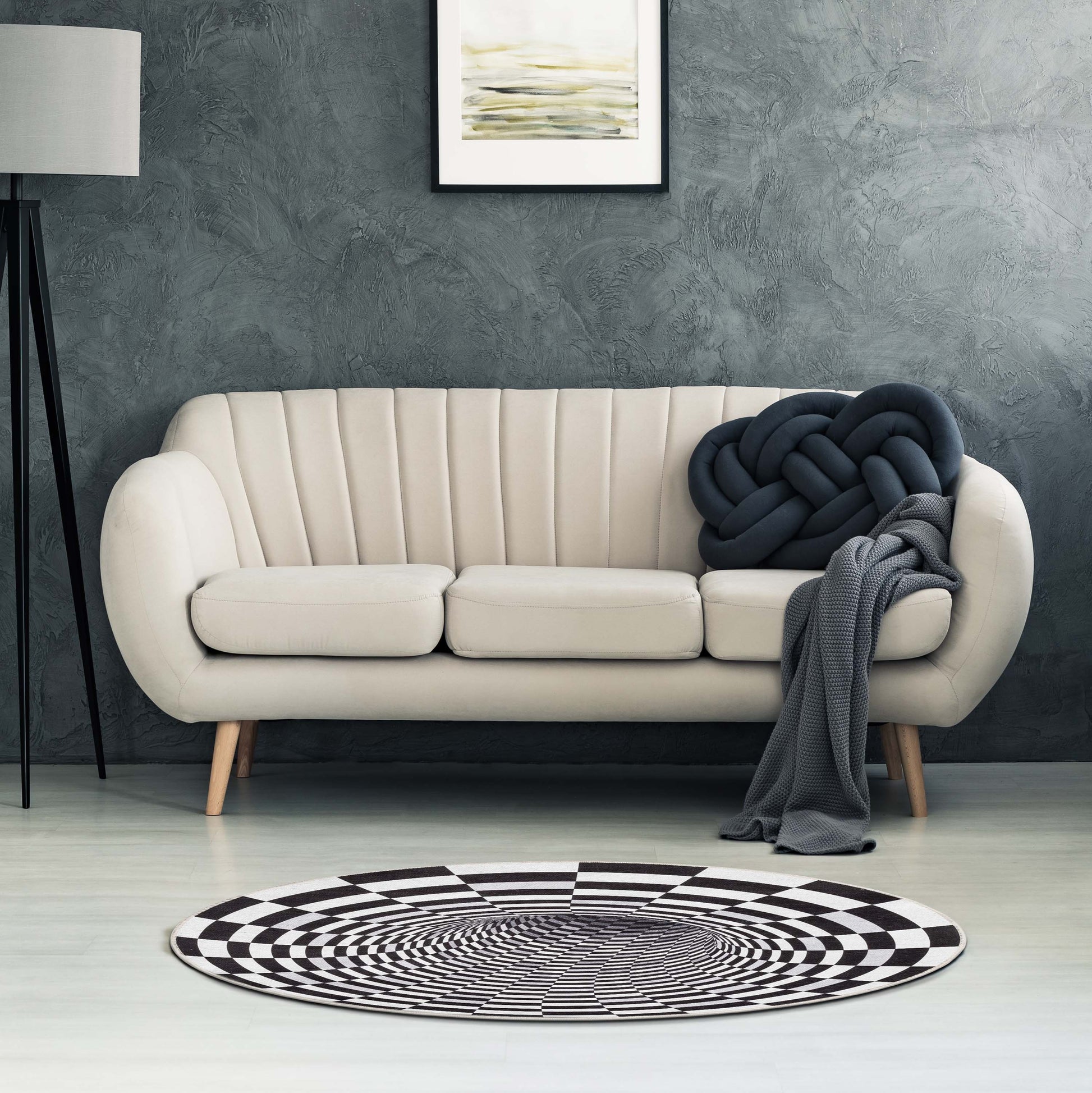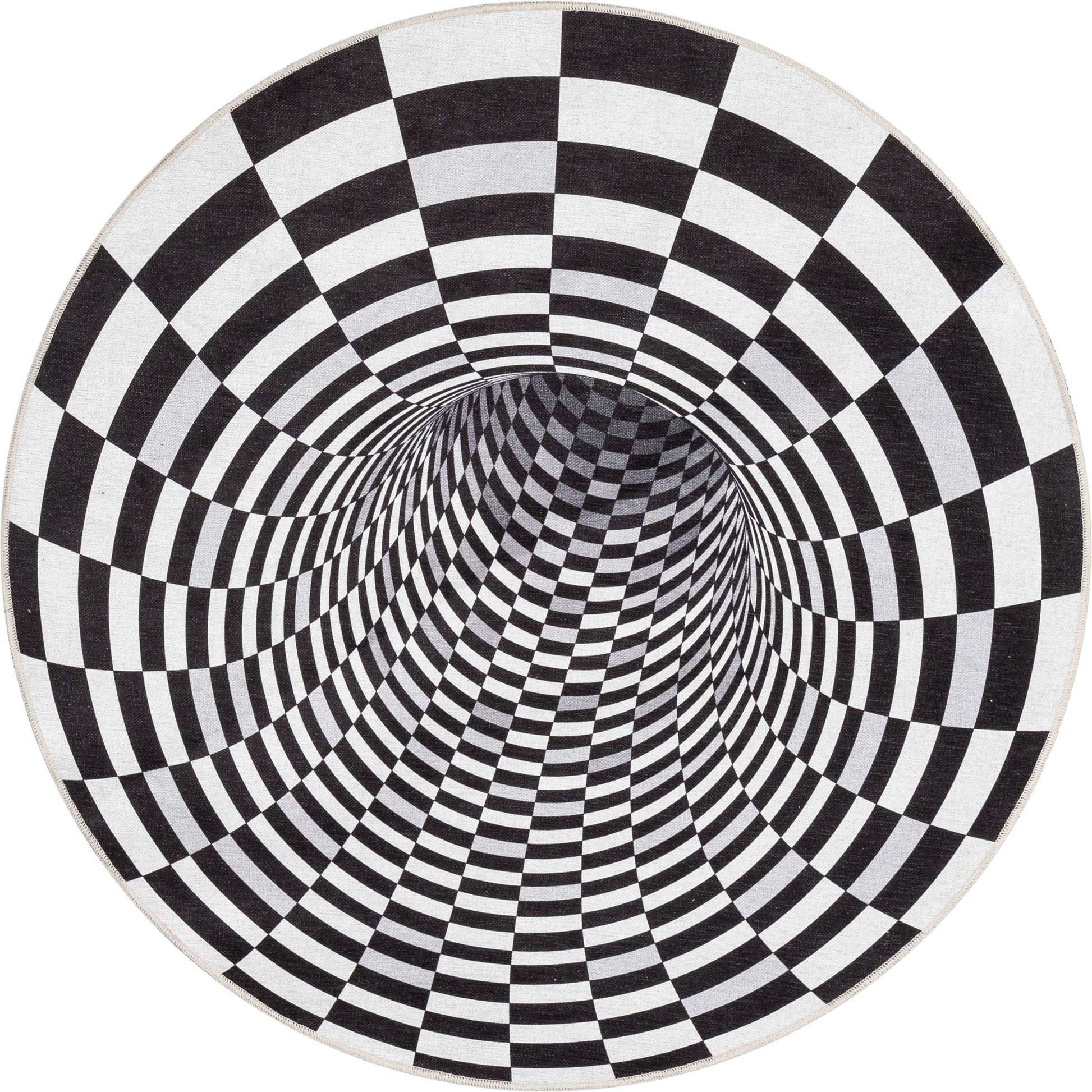 Vortex 3D Bottomless Hole Black Ivory Flat-Weave Washable Area Rug W-AP-02A