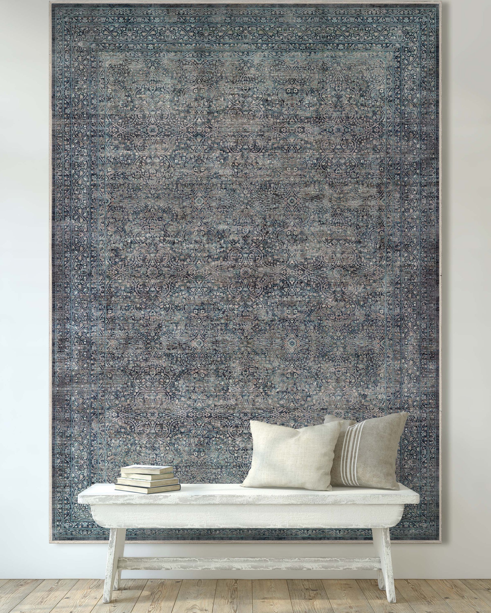 Juliette Vintage Persian Oriental Blue Washable Rug W-AS-02A