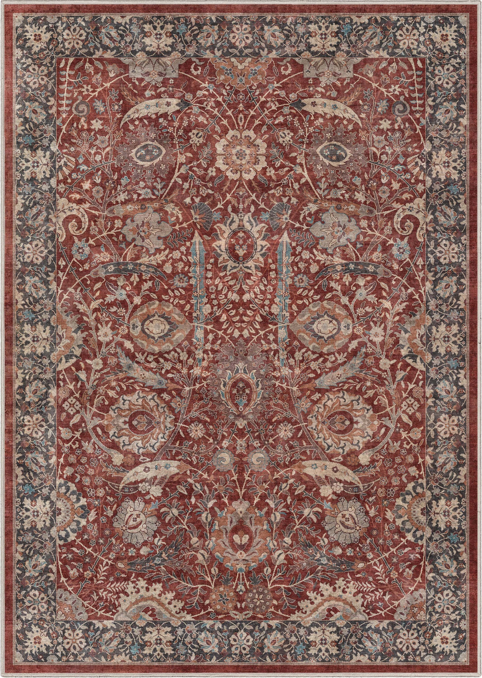 Liana Vintage Oriental Red Washable Rug W-AS-01C