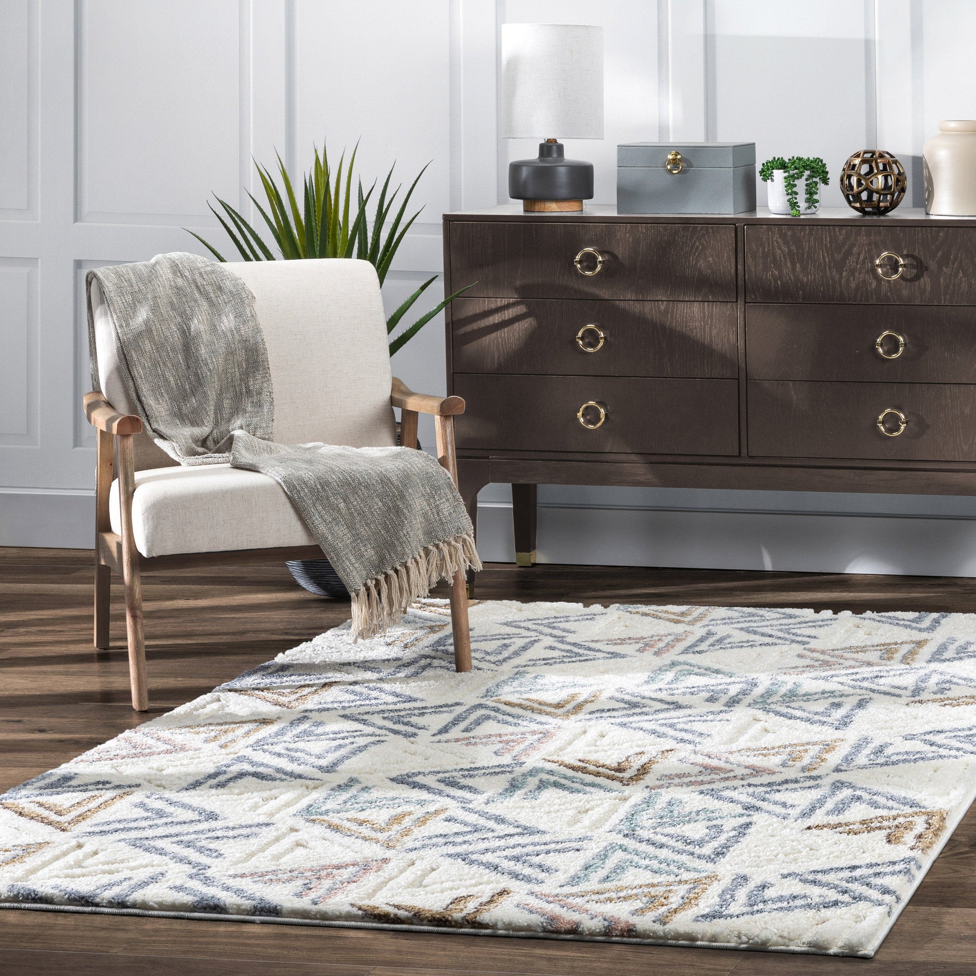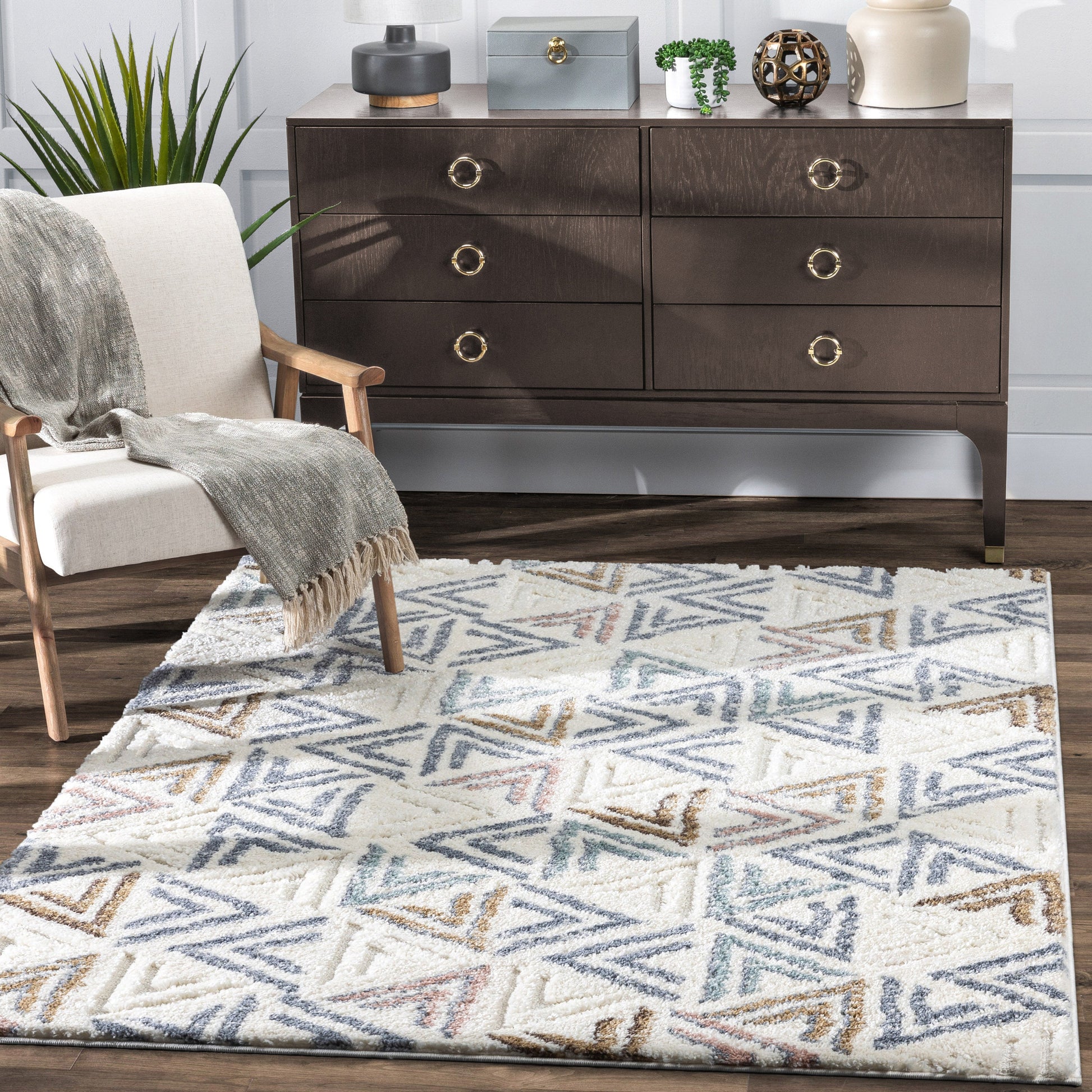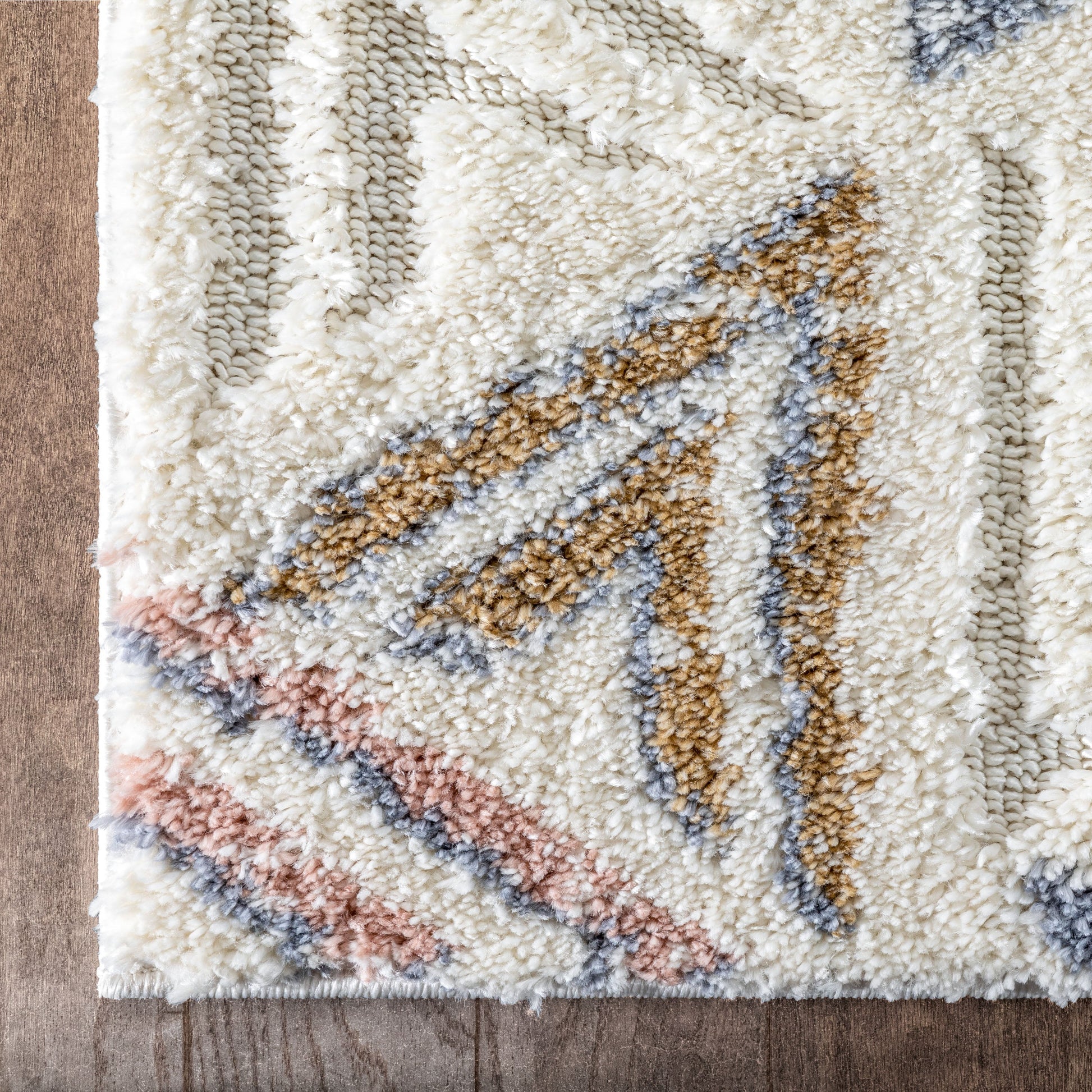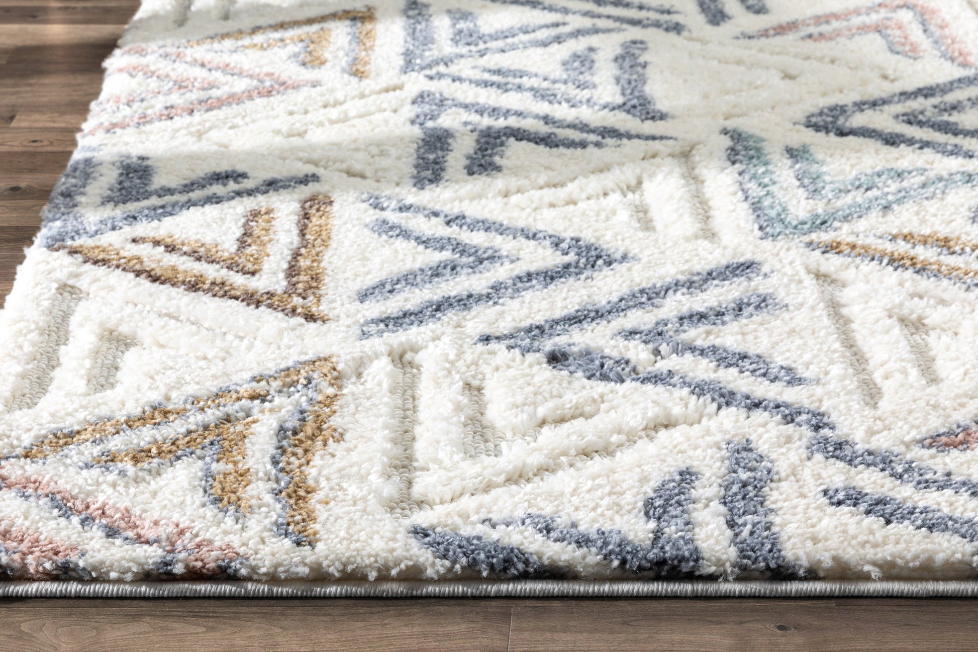 Thanatos Modern Geometric Ivory High-Low Shag Rug DEL-52