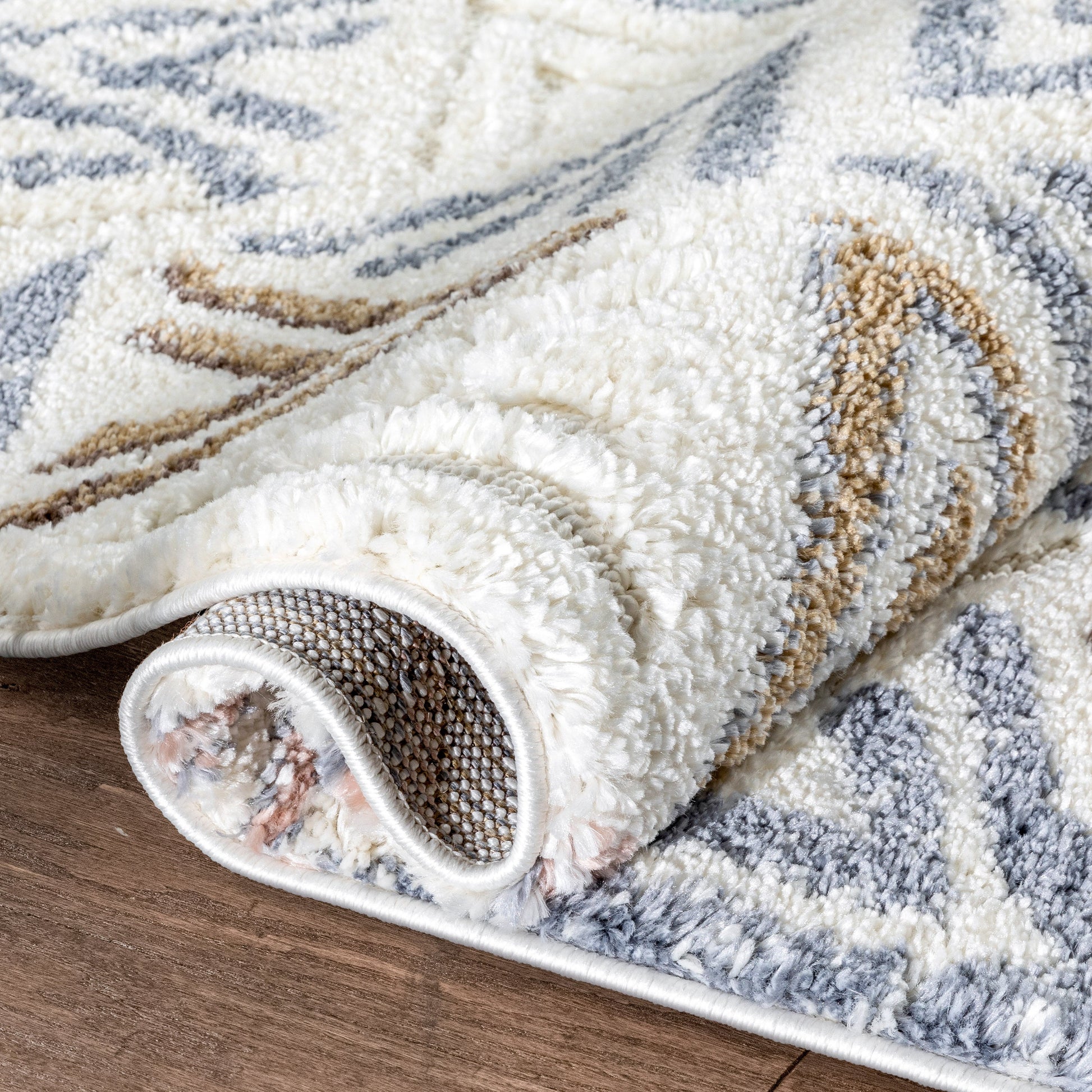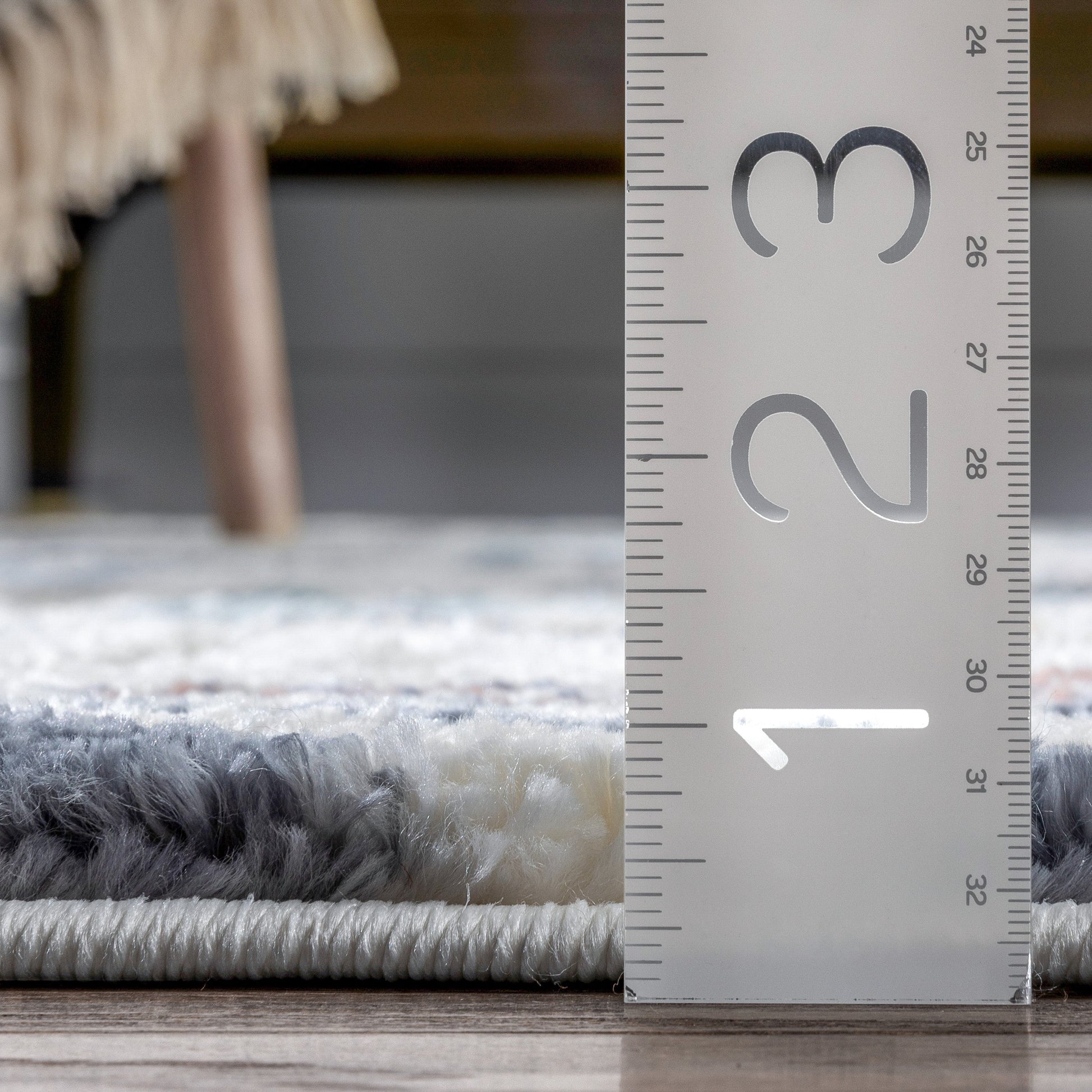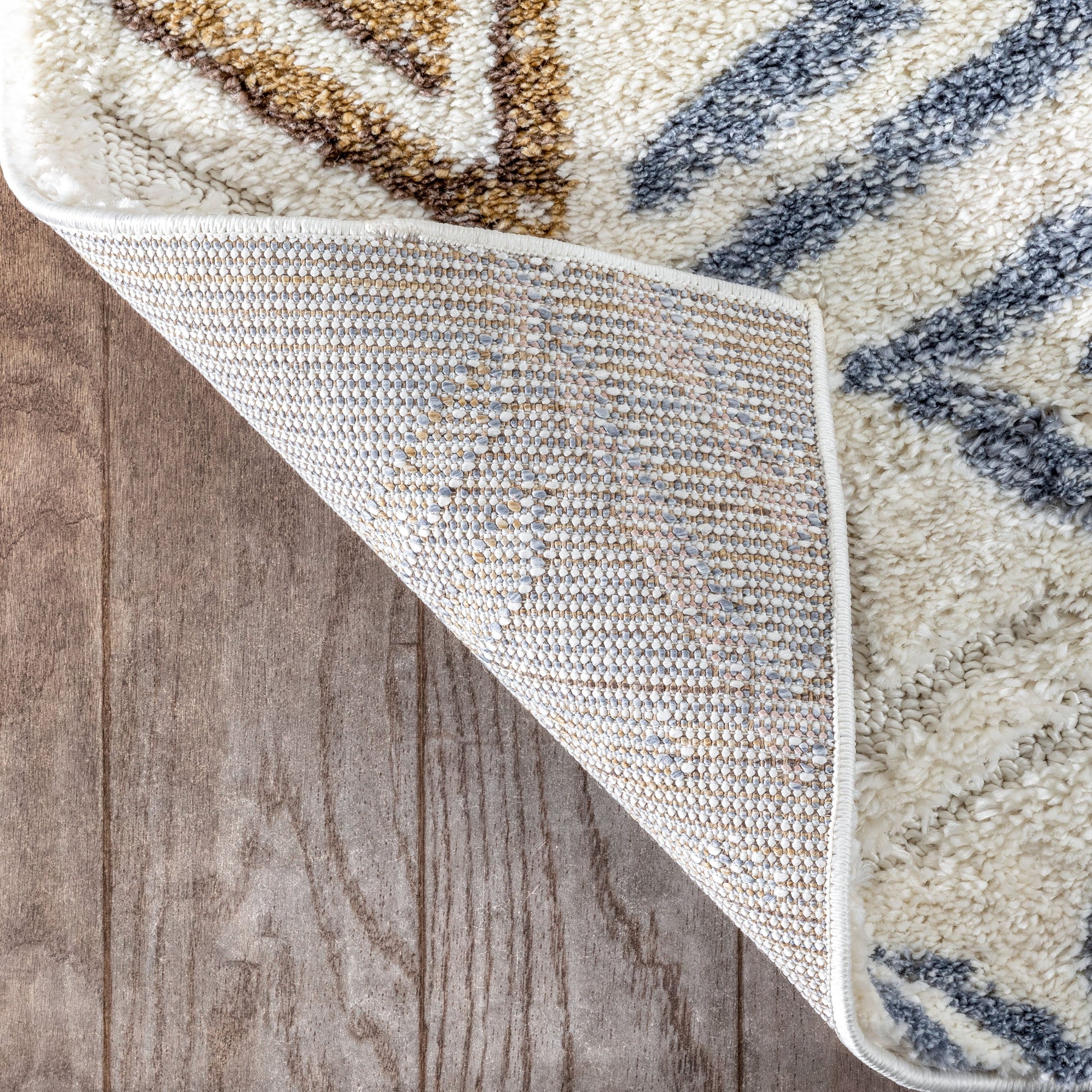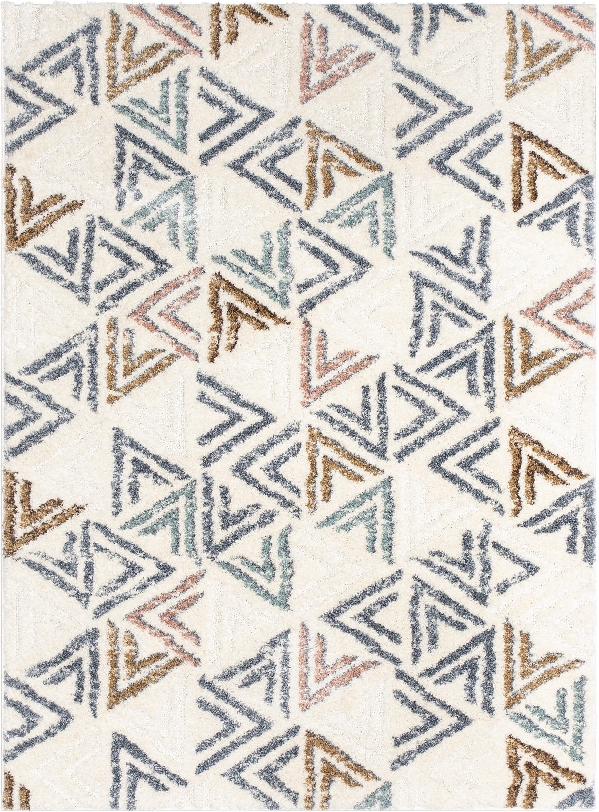 Thanatos Modern Geometric Ivory High-Low Shag Rug DEL-52