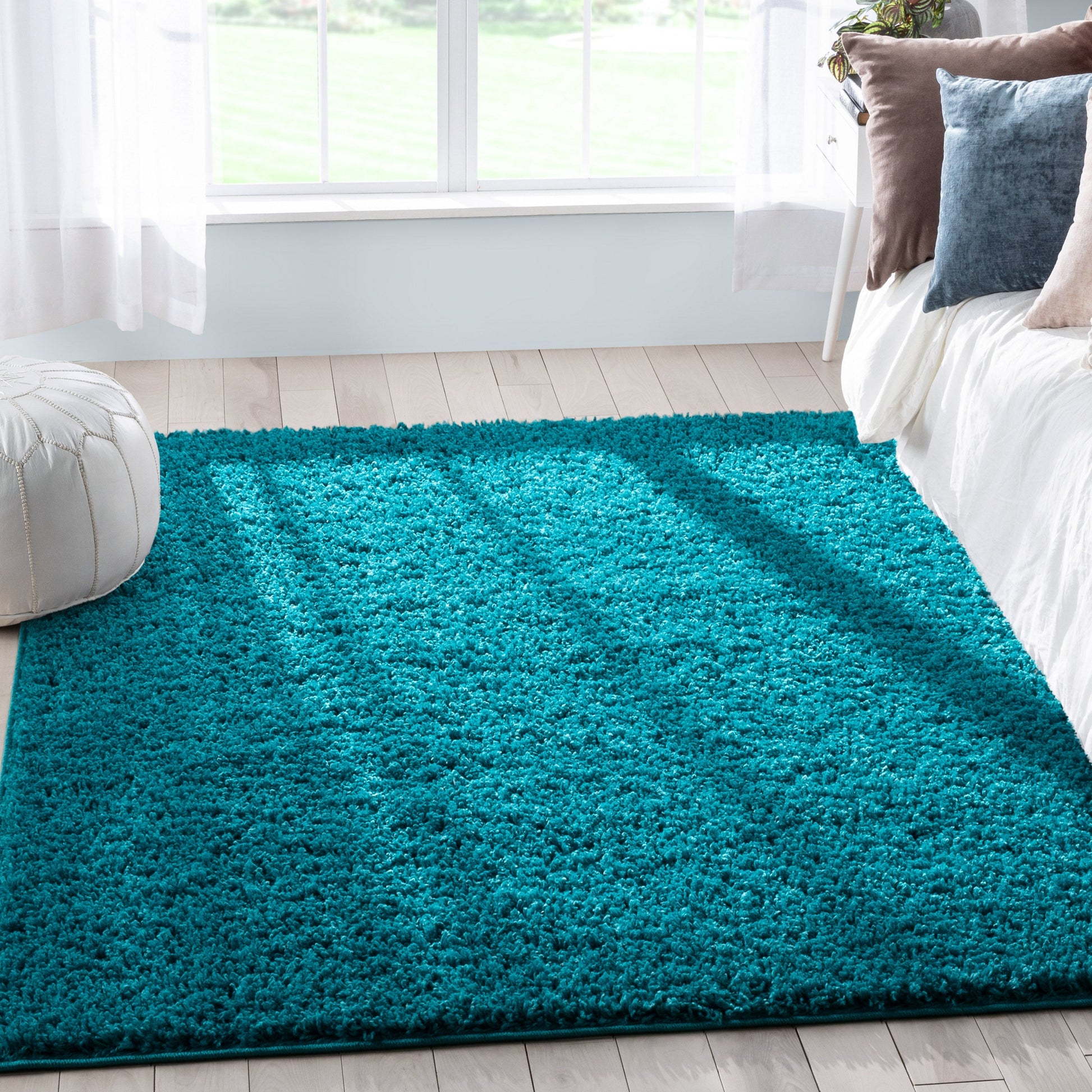 Emerson Modern Solid Teal Textured Shag Rug ELL-16