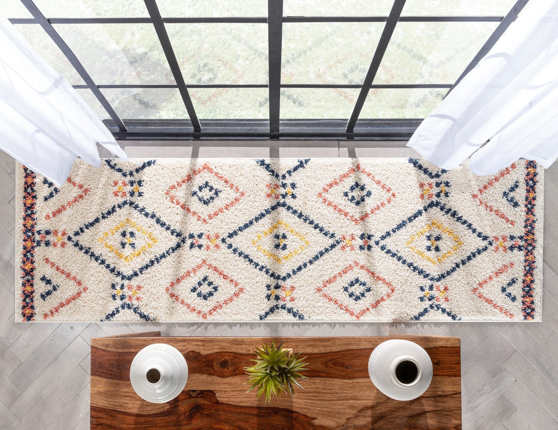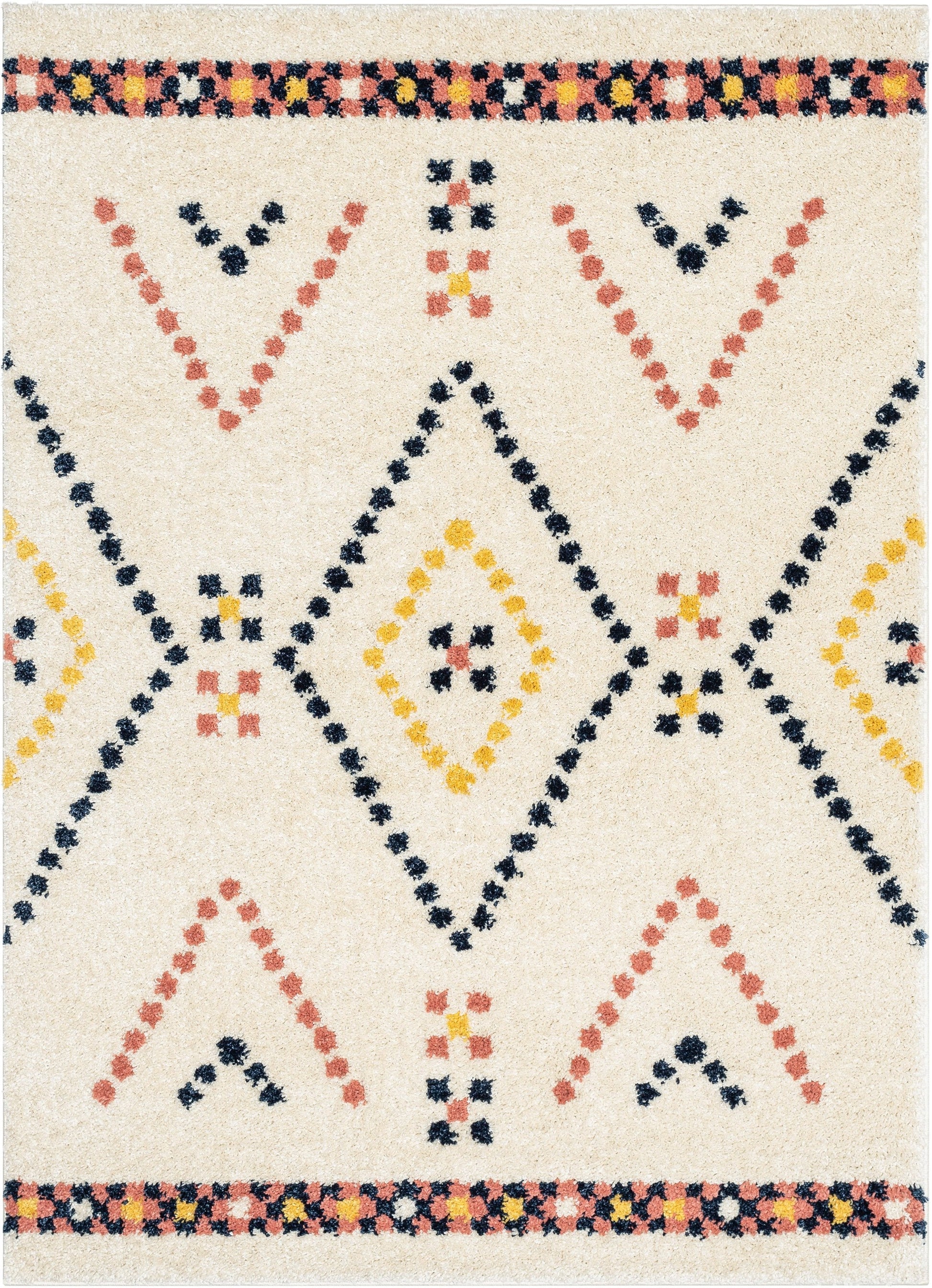 Puma Moroccan Tribal Diamond Pattern Ivory Thick Shag Rug GIG-82