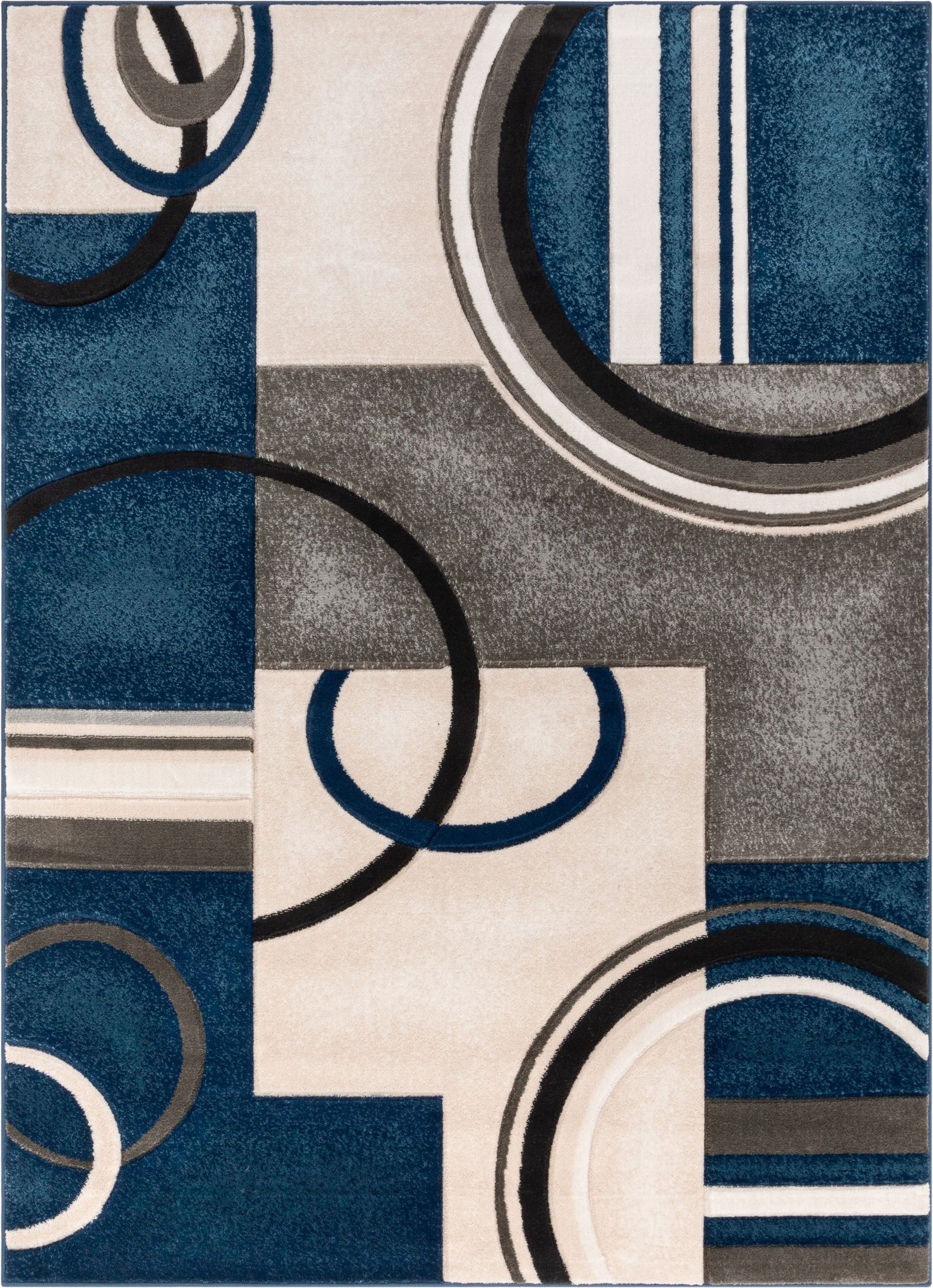 Belle Dark Blue Modern Abstract Geometric 3D Textured Rug GV-24