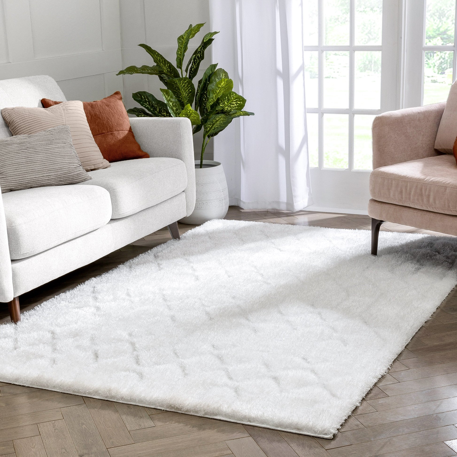 Winona Honeycomb Hexagon Pattern Shag Ivory 3D Textured Rug LOG-142
