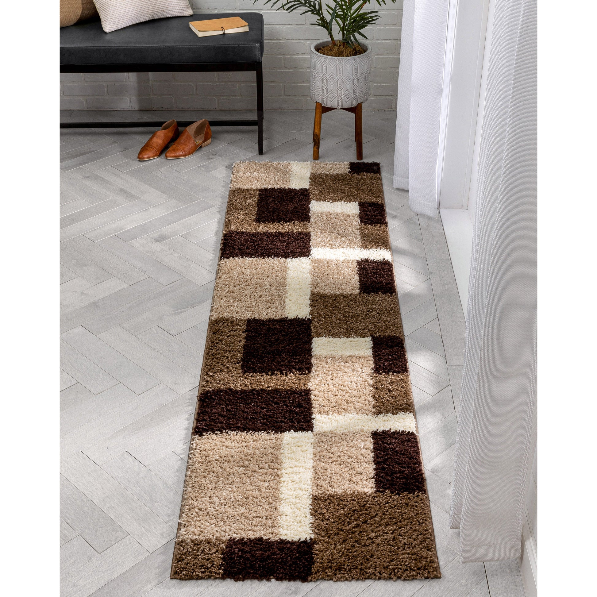 Cubes Beige Brown Modern Geo Rug 7002