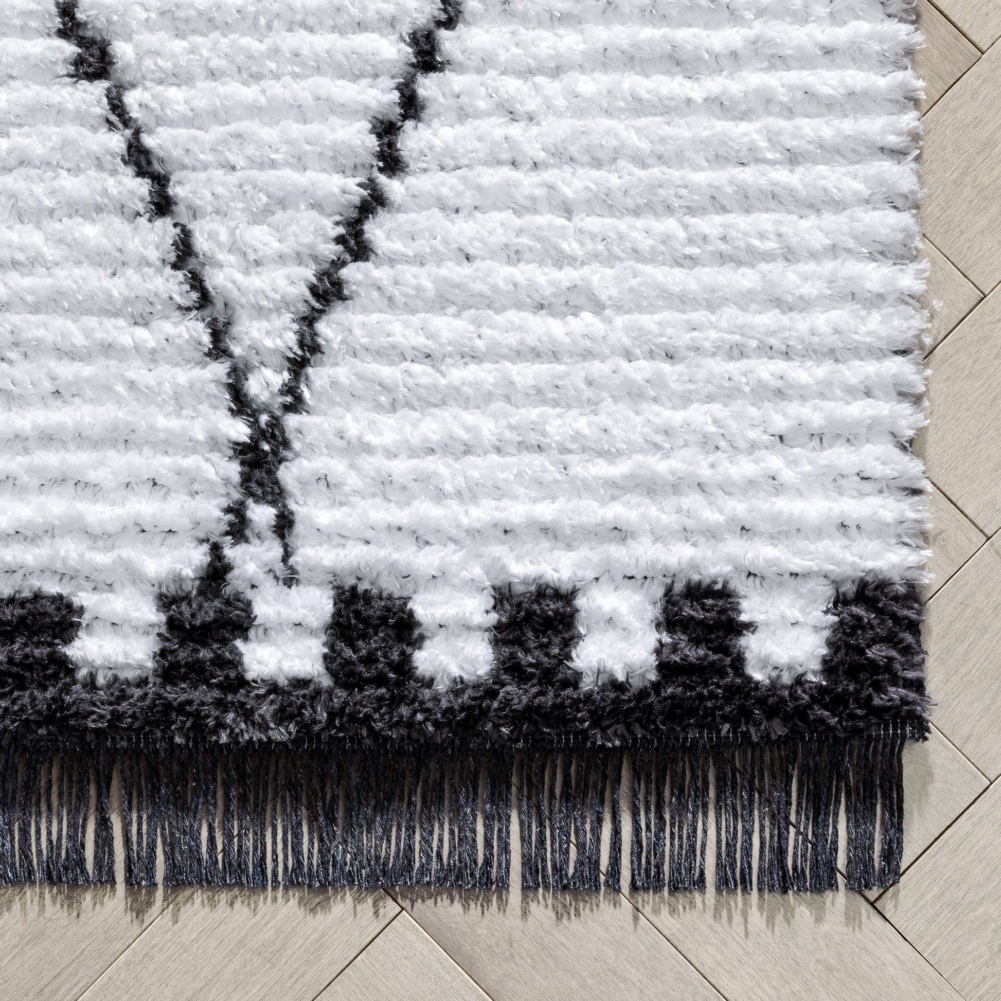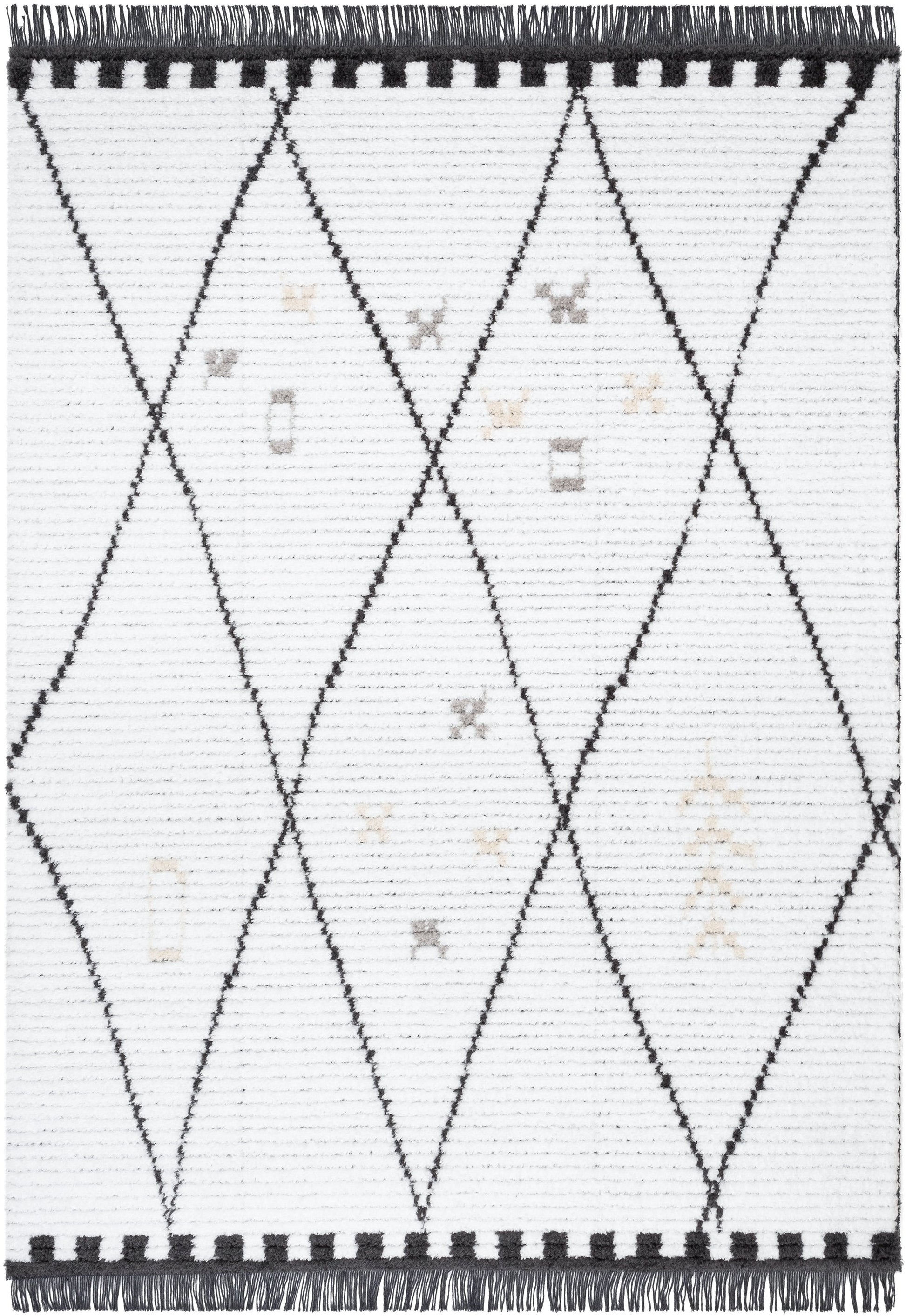Soyala Tribal Diamond Lattice Pattern Grey High-Low Textured Pile Rug MYA-47