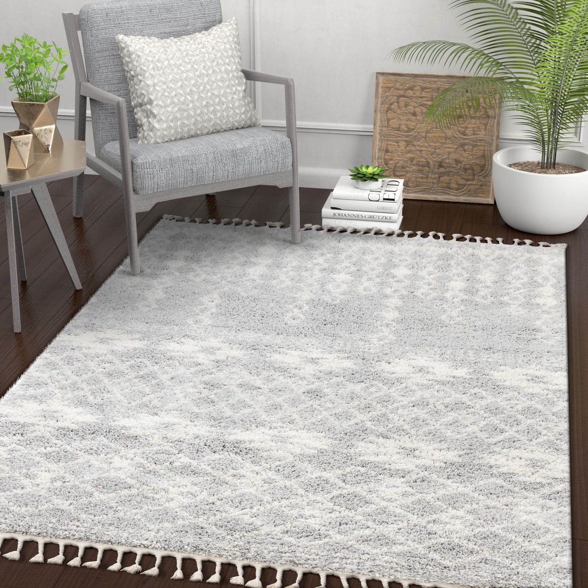 Tozi Moroccan Tribal Grey Shag Rug MEL-37