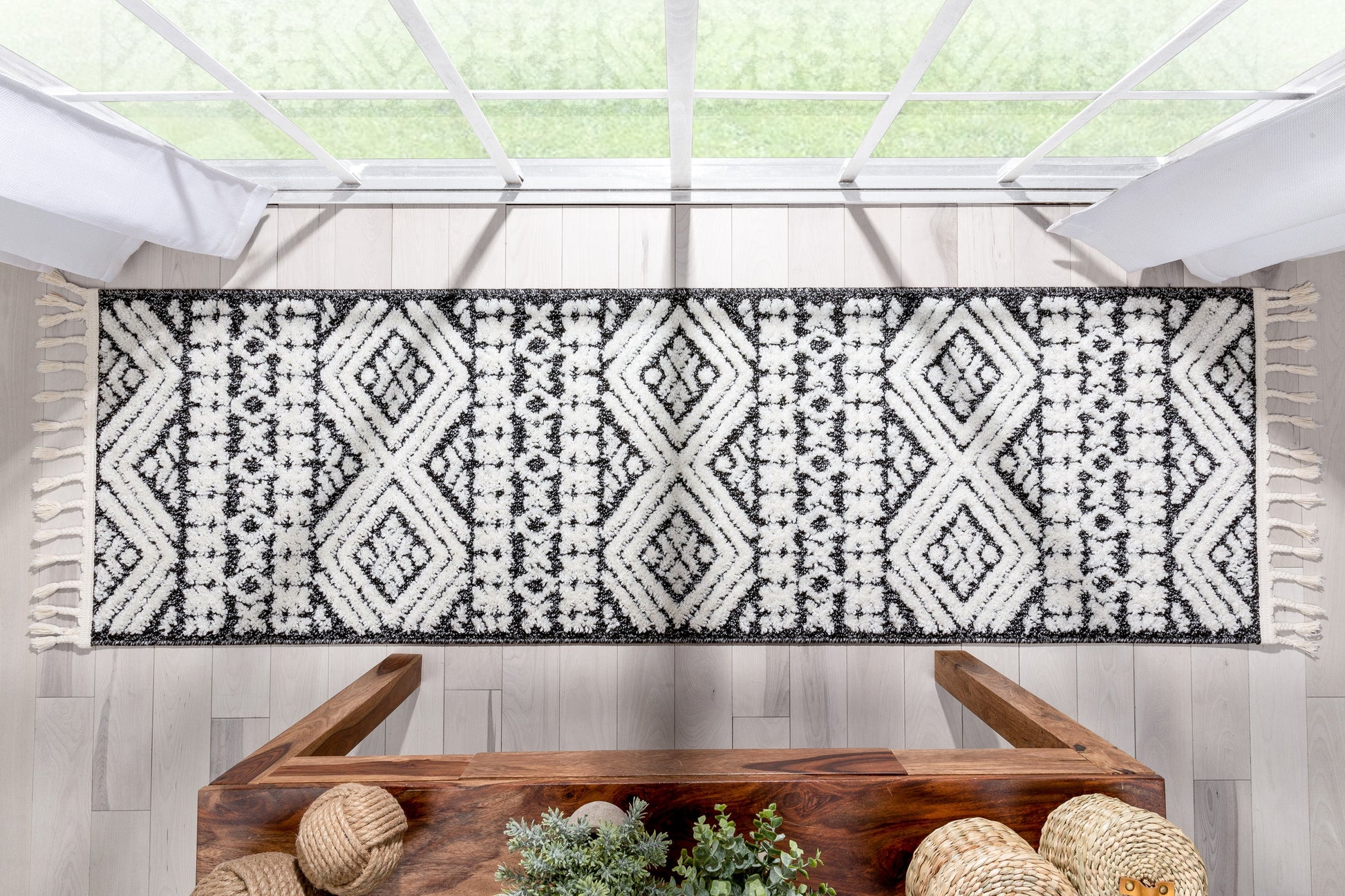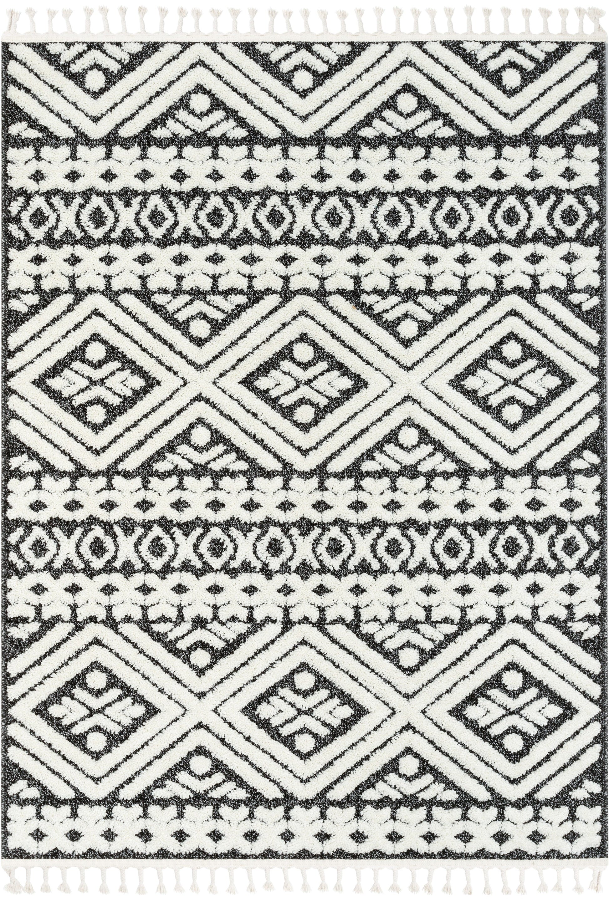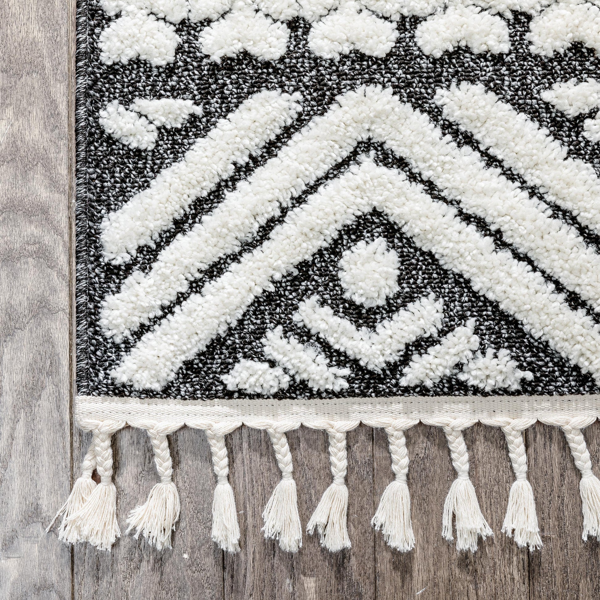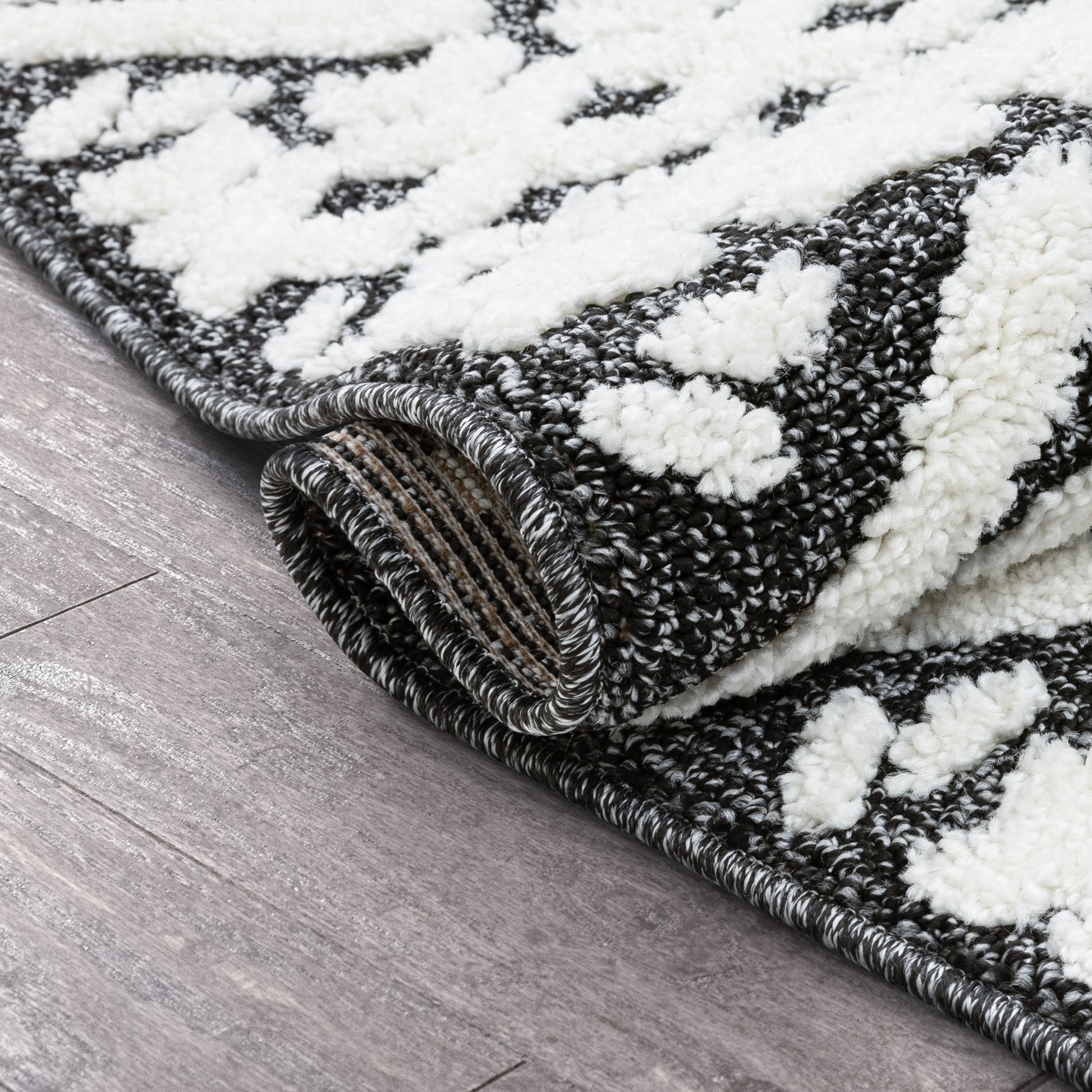 Eliana Tribal Geometric Chevron pattern Dark Grey White High-Low Textured Rug SAL-57