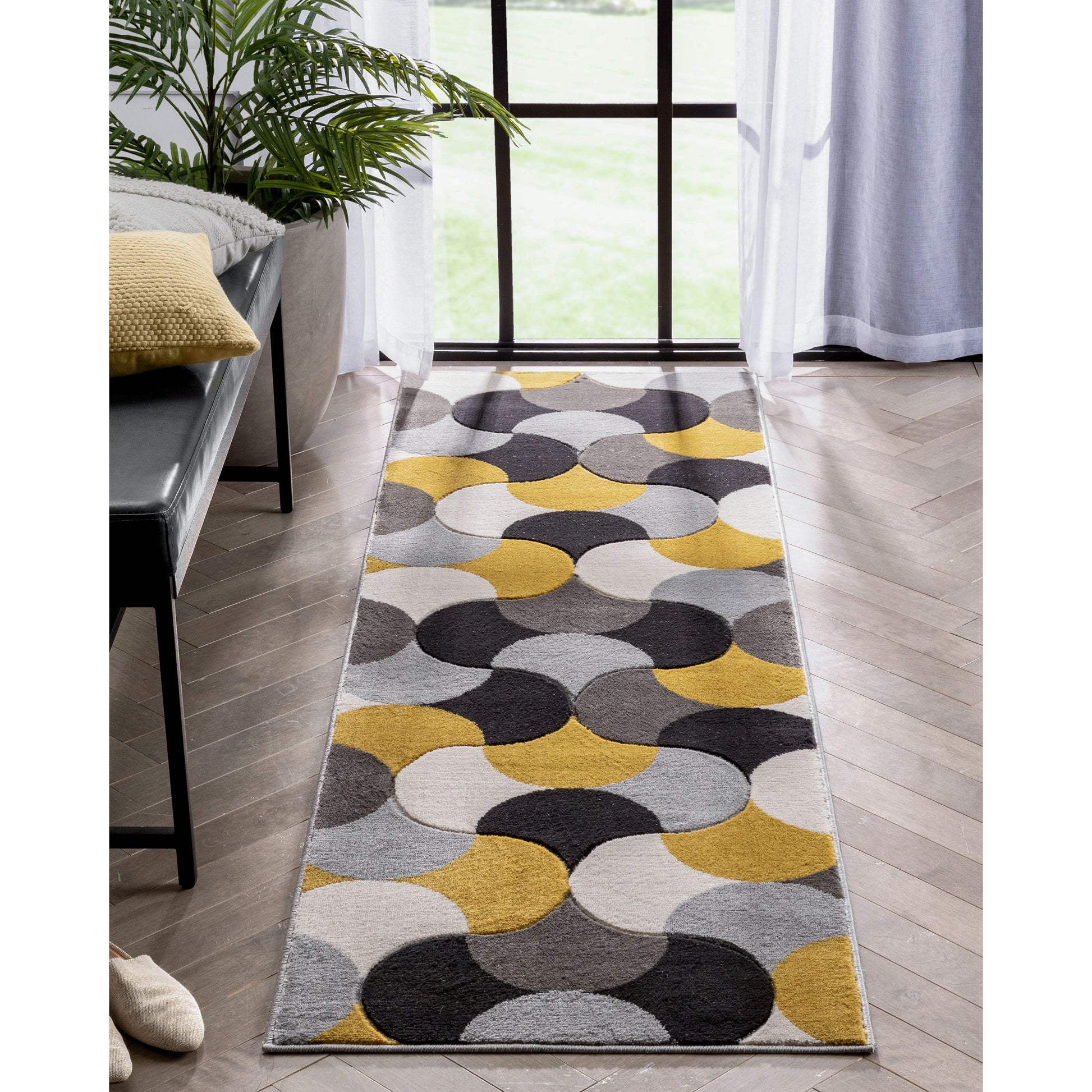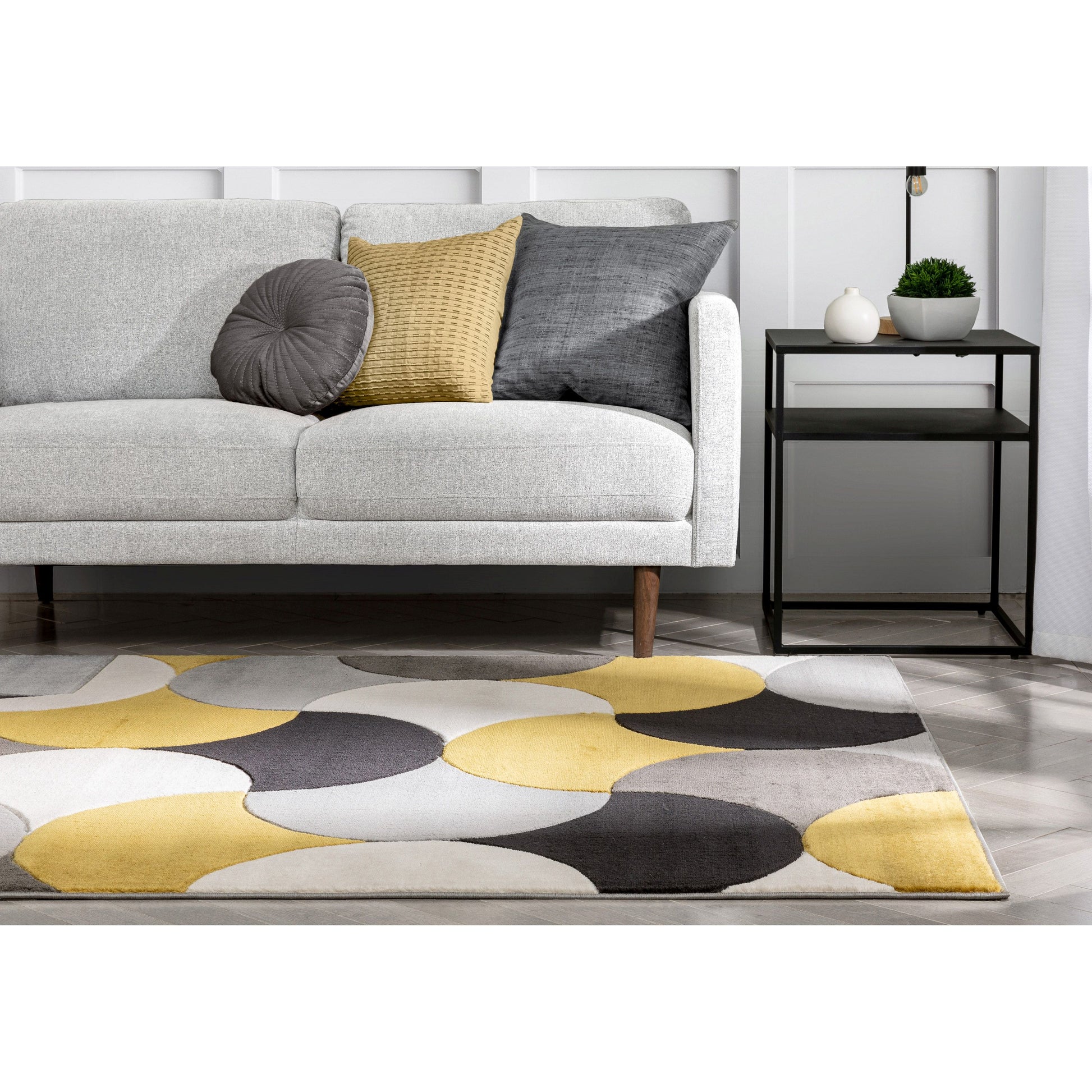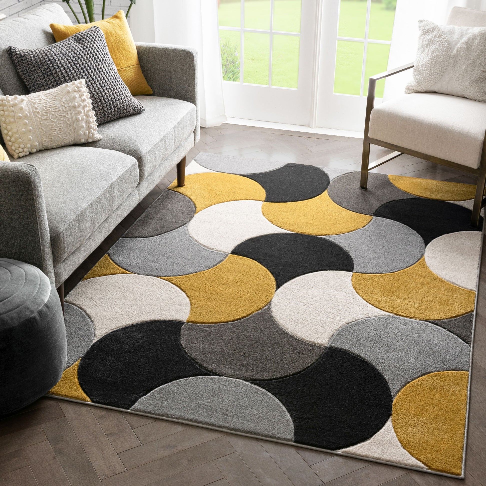 Helena Gold Mid-Century Modern Abstract Geometric 3D Textured Rug GV-31